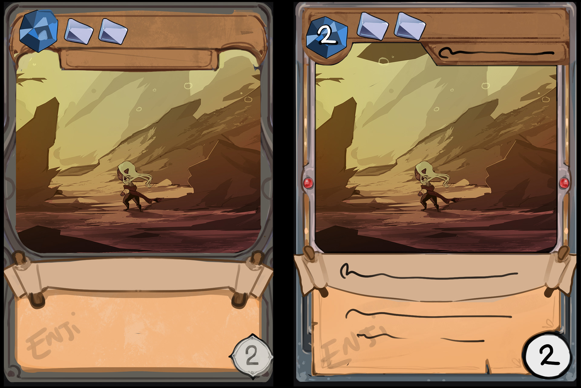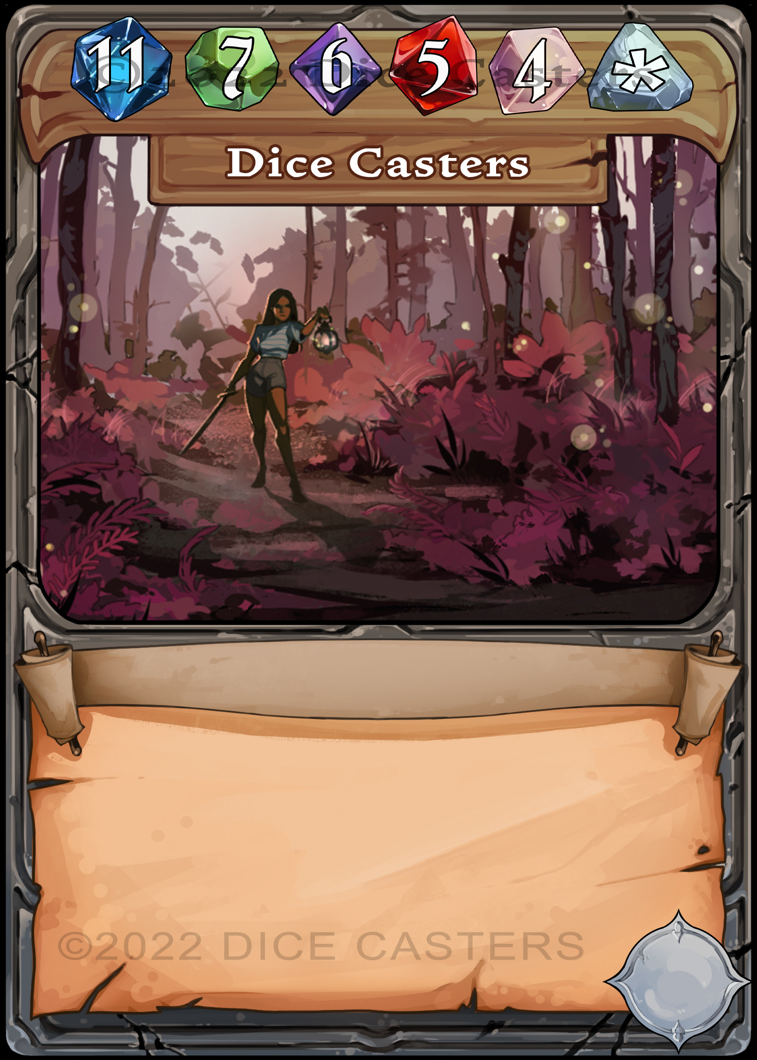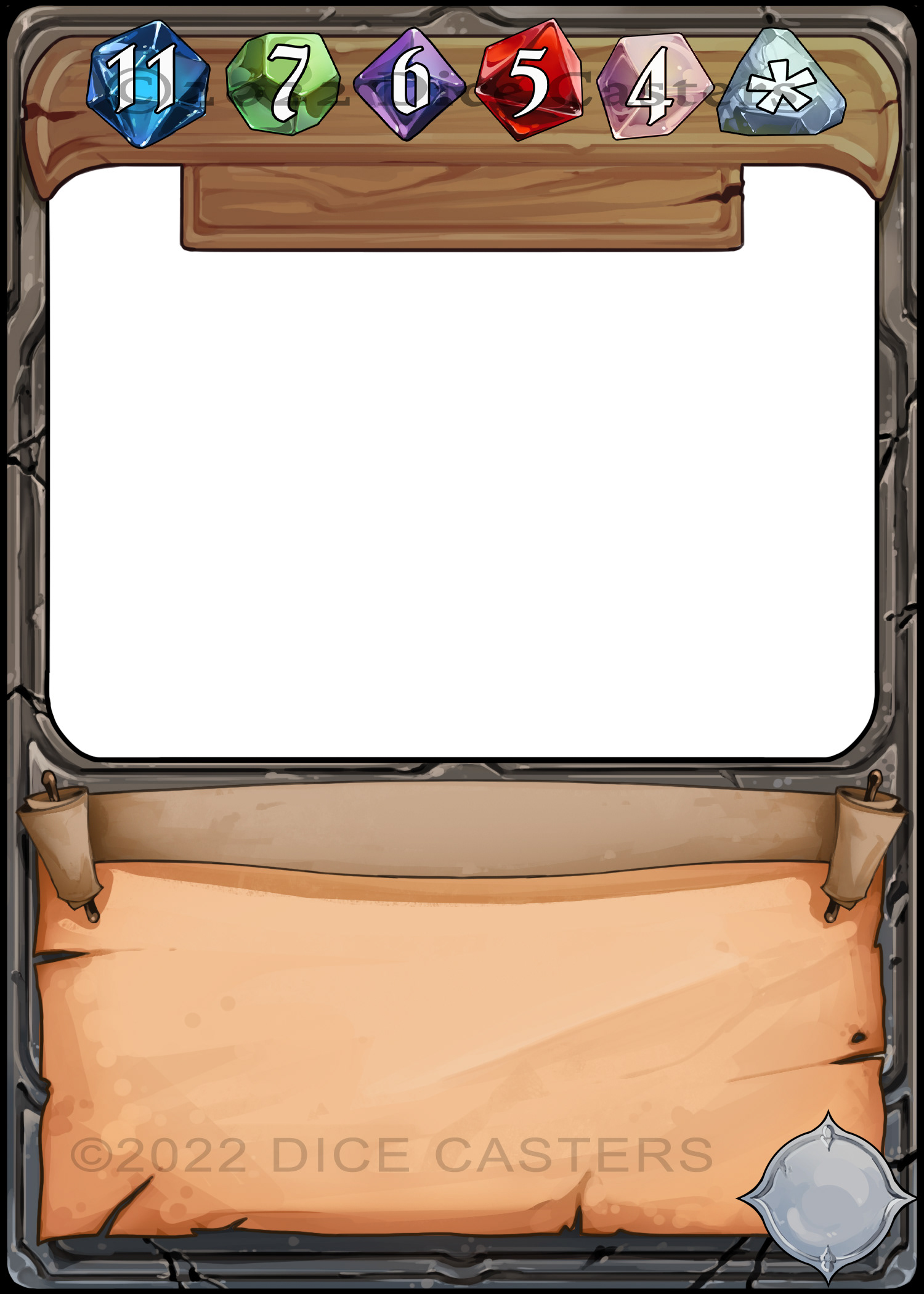 Dice Casters is a tabletop indie card game. Shown above is the finish frame and gem assets with my art as mockup.